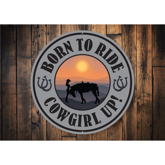 Born To Ride Cowgirl Up Metal Sign