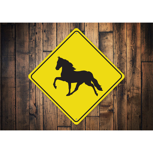 Horse Crossing Diamond Metal Sign