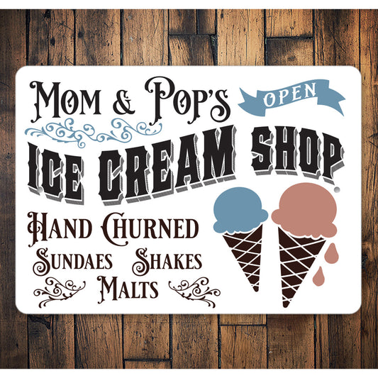 Mom And Pops Ice Cream Shop Sign