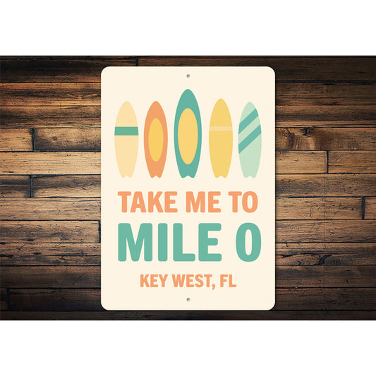 Take Me To Mile 0 Mid-Century Surfboard Key West Sign