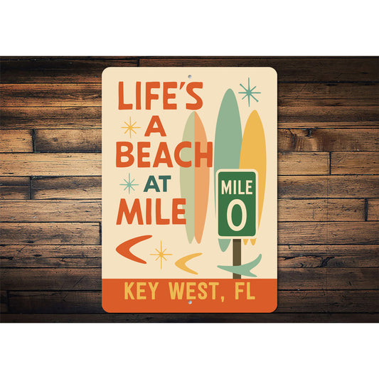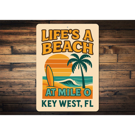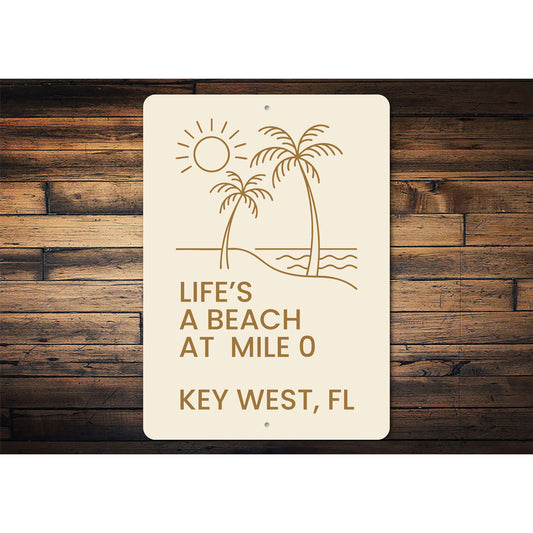 Life's A Beach At Mile 0 Minimalist Beach Theme Sign