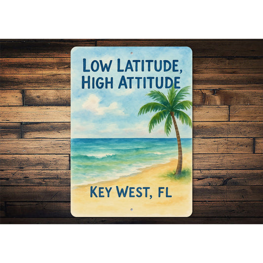Low Latitude, High Attitude Key West Watercolor Beach Sign