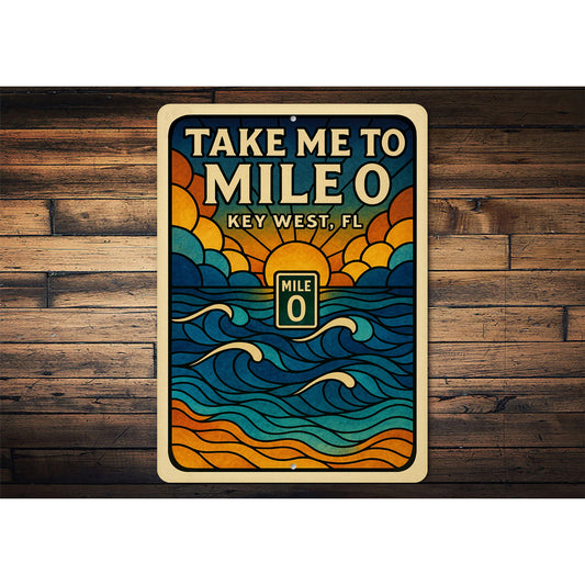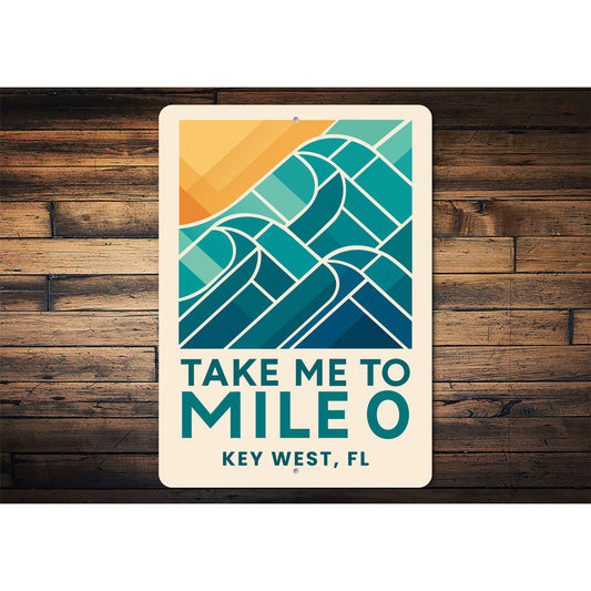 Take Me To Mile 0 Key West Geometric Waves Beach Sign