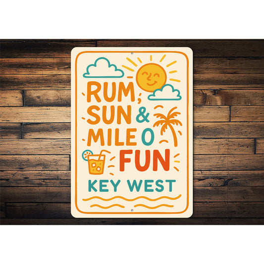 Rum, Sun & Mile 0 Fun Key West Beach Vibes Sign