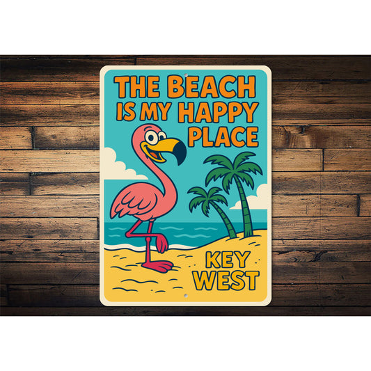The Beach Is My Happy Place Key West Cartoon Flamingo Sign