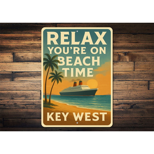 Relax You're On Beach Time Vintage Cruise Beach Sign