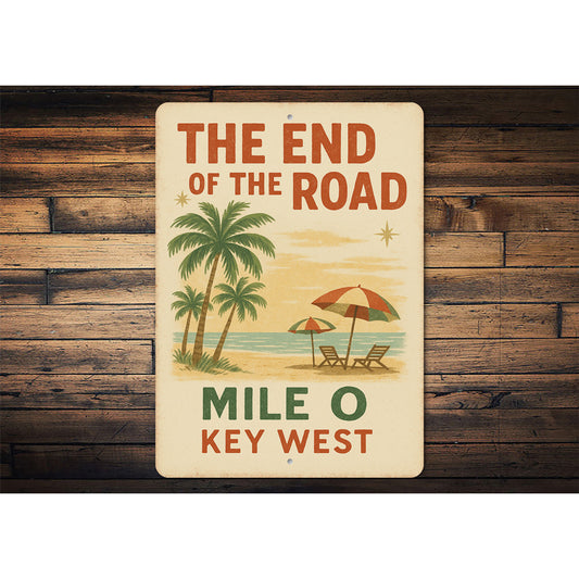 The End Of The Road Key West Mile 0 Beach Retro Sign