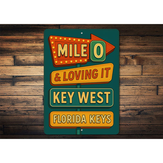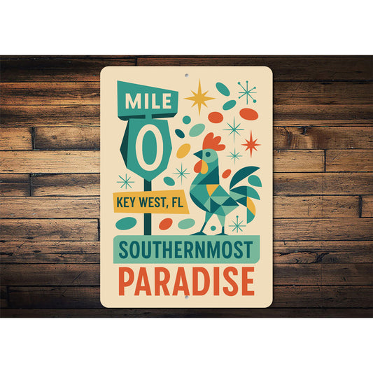 Mile 0 Key West Paradise Mid-Century Geometric Style Sign