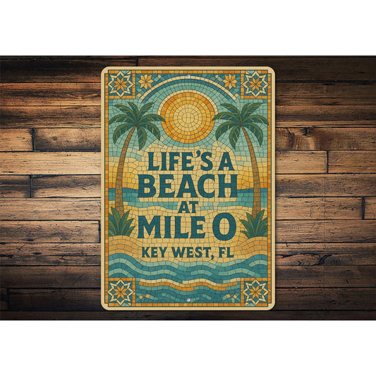 Life's A Beach At Mile 0 Mosaic Tile Theme Key West Sign