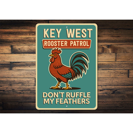 Rooster Patrol Funny Key West Florida Retro Style Sign