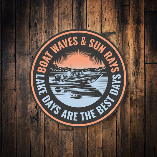 Boat Waves Sun Rays Lake Life Aluminum Sign