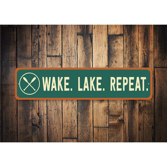 Retro Lake Metal Sign Wake Lake Repeat Waterfront Decor