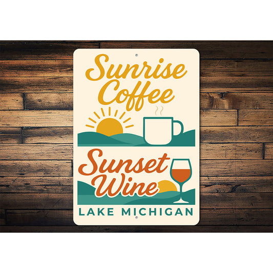 Coffee & Wine Lakeside Sign Lake Michigan Sunrise Sunset