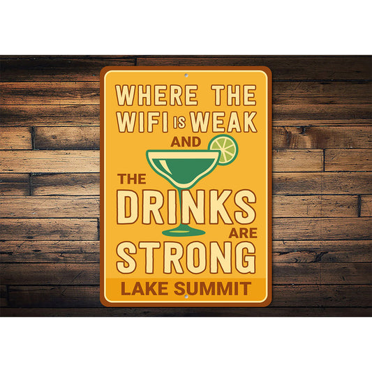 Funny Lake House Sign Weak WiFi Strong Drinks Humor