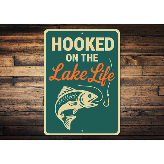 Hooked on the Lake Life Aluminum Sign Nautical Wall Decor