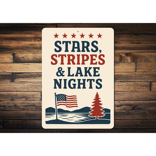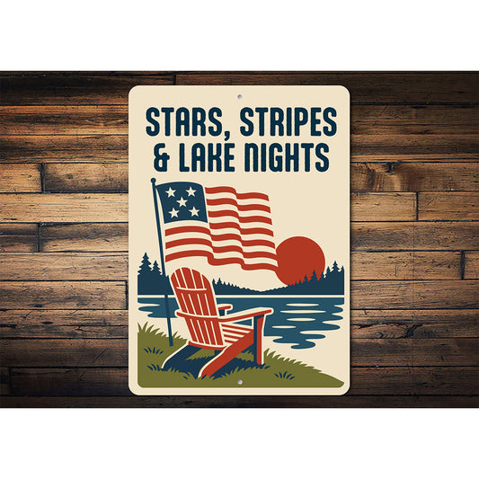 Stars Stripes & Lake Nights Metal Sign Patriotic Lake Decor