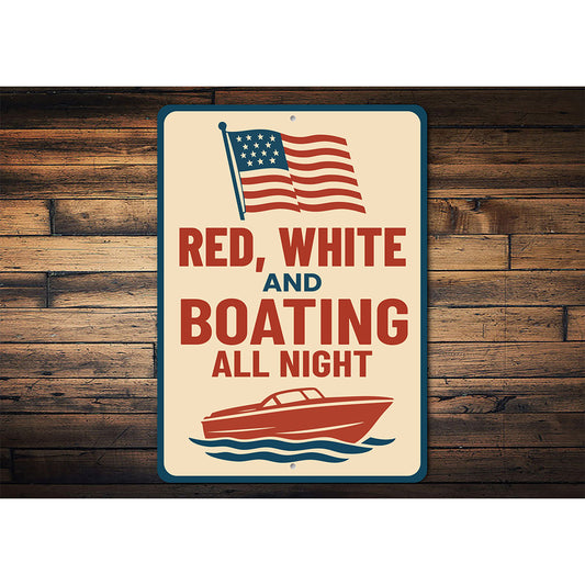 Red White & Boating All Night Metal Sign Nautical Patriotic
