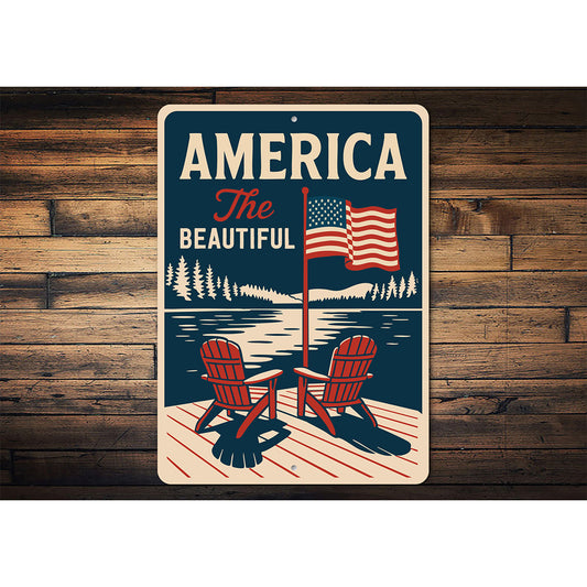 America the Beautiful Aluminum Sign Patriotic Home Decor