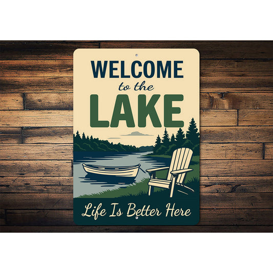 Welcome to the Lake Life is Better Here Aluminum Sign