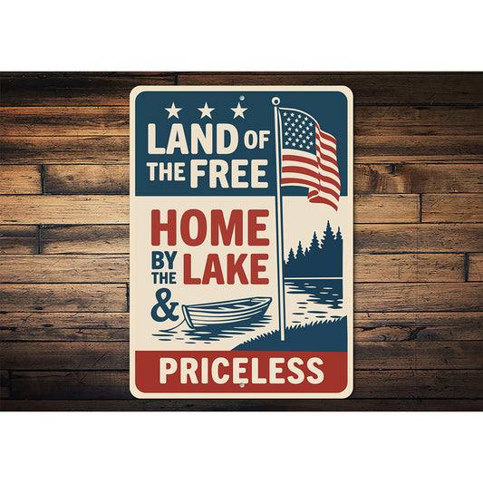 Land of the Free Home by Lake Aluminum Sign Patriotic Decor