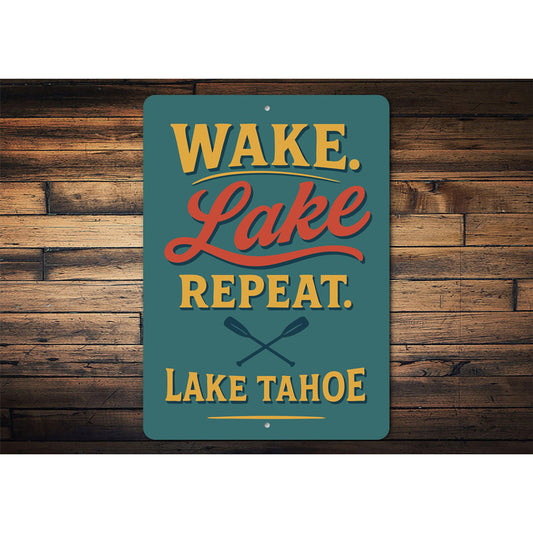 Wake Lake Repeat Lake Tahoe Aluminum Decor Sign