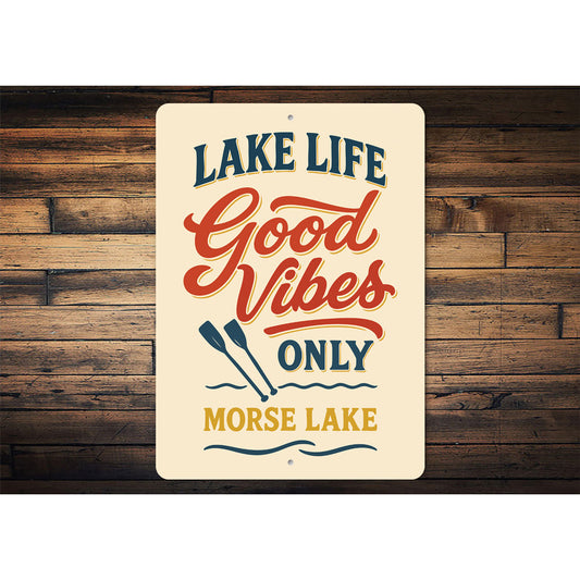 Lake Life Good Vibes Only Morse Lake Aluminum Decor Sign