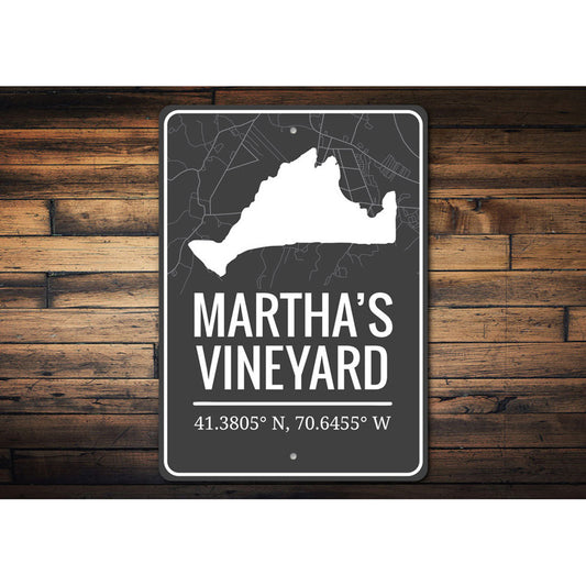 Marthas Vineyard Coordinates Metal Sign