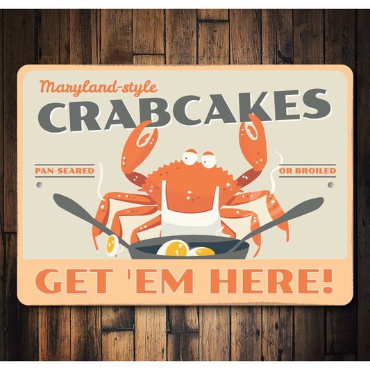 Maryland Style Crab Cakes Get 'Em Here Sign