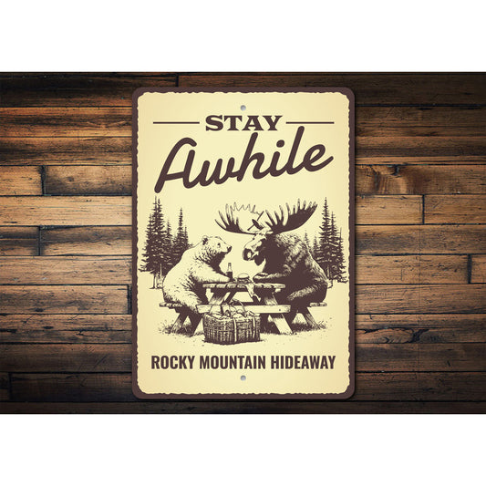Stay Awhile Rocky Mountain Hideaway Beer And Moose Sign