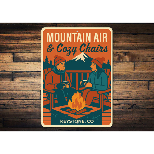 Vintage 'Mountain Air & Cozy Chairs' Keystone Co Metal Sign