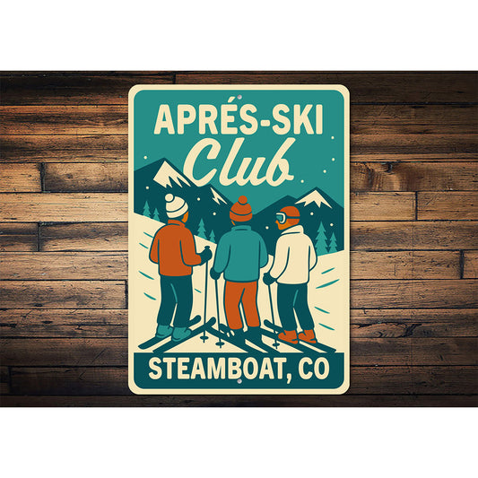 Vintage Après-Ski Club Aluminum Sign Steamboat, CO