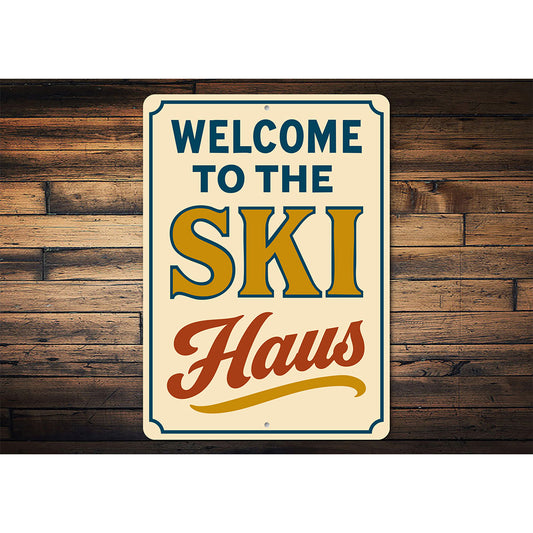 Vintage Welcome to the Ski Haus Aluminum Sign