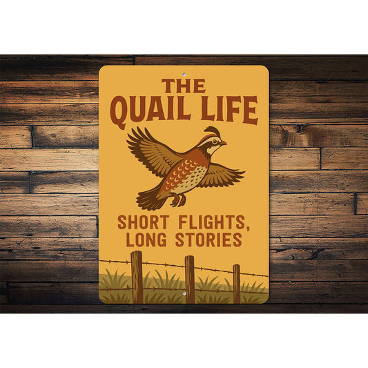 Retro Quail Decor Metal Sign Short Flights Long Stories