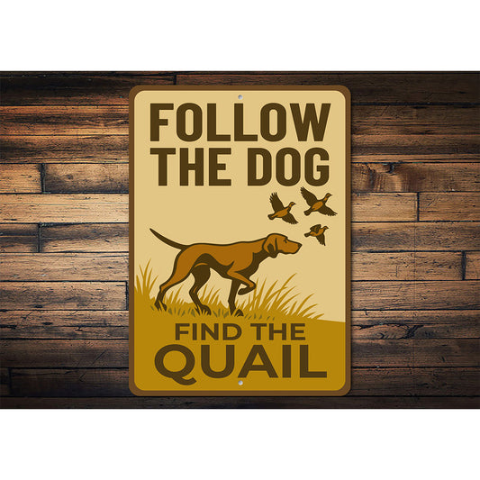 Retro Dog Lover Metal Sign Follow The Dog Find The Quail