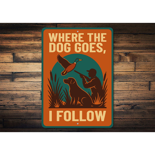 Vintage Where The Dog Goes I Follow Aluminum Sign