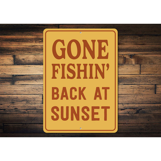 Vintage Gone Fishin Back at Sunset Aluminum Sign