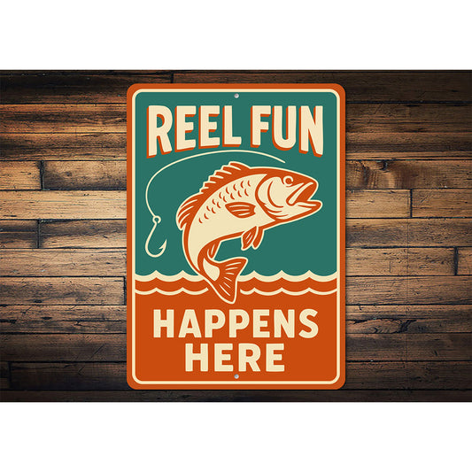 Retro Angler Metal Sign Reel Fun Happens Here Decor