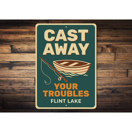Rustic Lake Metal Sign Cast Away Troubles Flint Lake Decor