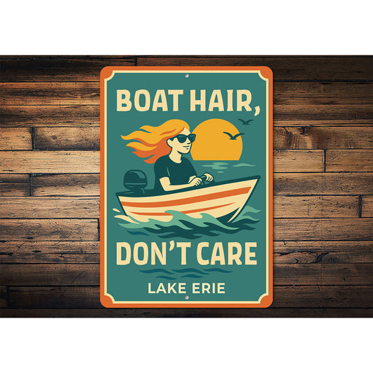 Retro Lake Metal Sign Boat Hair Don't Care Lake Erie Decor