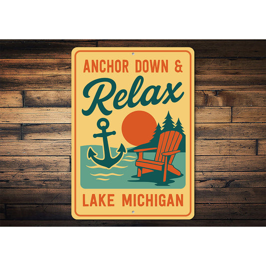 Nautical Lake Metal Sign Anchor Down Relax Lake Michigan