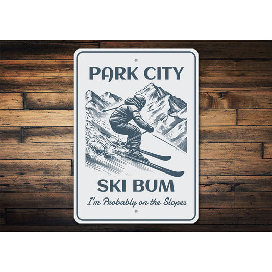 Park City Ski Bum Probably On The Slopes Sign