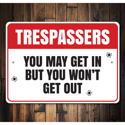 Trespassers May Get In But Won't Get Out 2nd Amendment Metal Sign