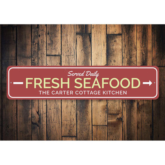 Fresh Seafood Vertical Metal Sign