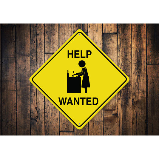 Dishes Help Wanted Diamond Metal Sign