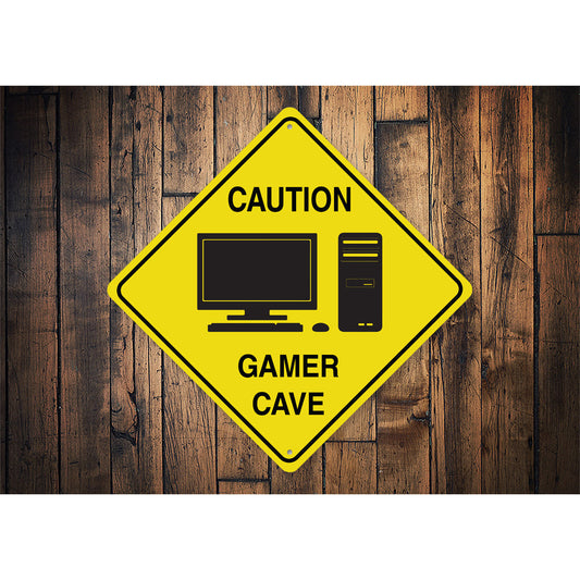Warning Gamer Zone Diamond Metal Sign