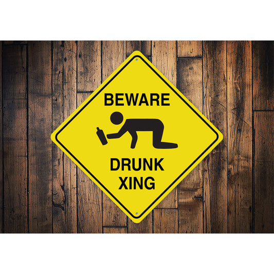 Beware Drunk Xing Diamond Metal Sign