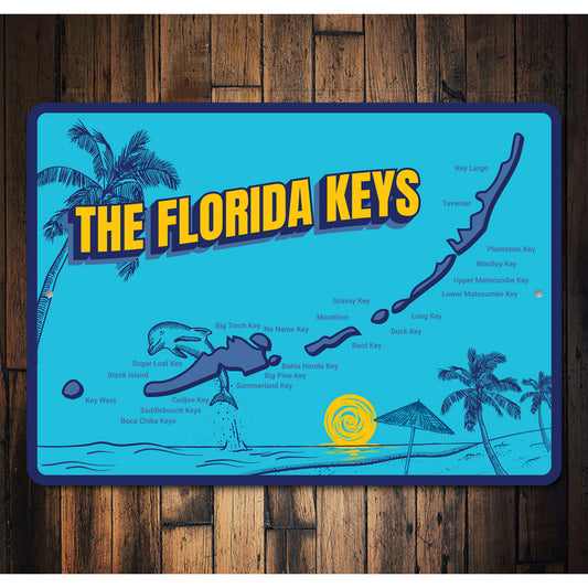 The Florida Keys Map Metal Sign, Beach House Metal Sign