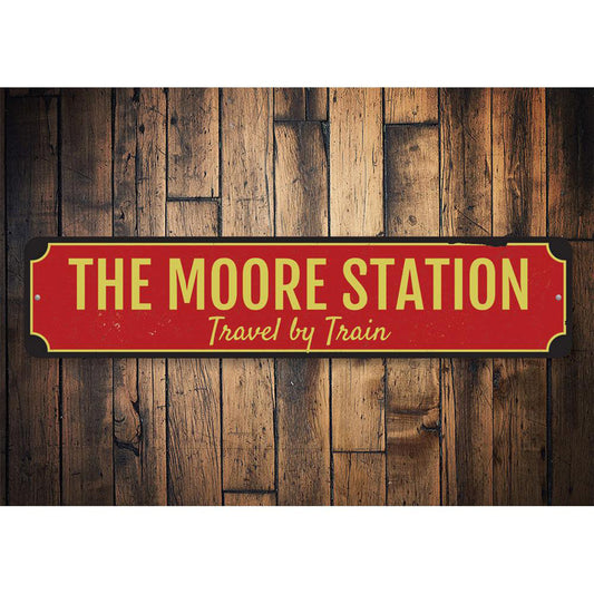 Family Train Station Metal Sign