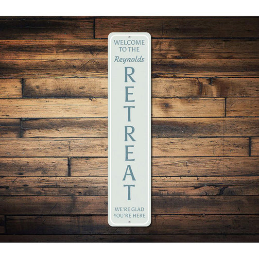 Family Retreat Vertical Metal Sign