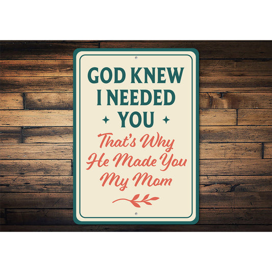 God Knew I Needed You That's Why He Made You My Mom Sign